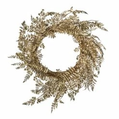 Decorate your home with the delicate golden fern leaves entwined to create this beautiful wreath. Designed with a stunning gold colour, this piece can be paired with other gold toned decorations and candles for a dramatic look, or displayed alone for an equally effective look and requires no maintenance so will stay fresh throughout the entire season.