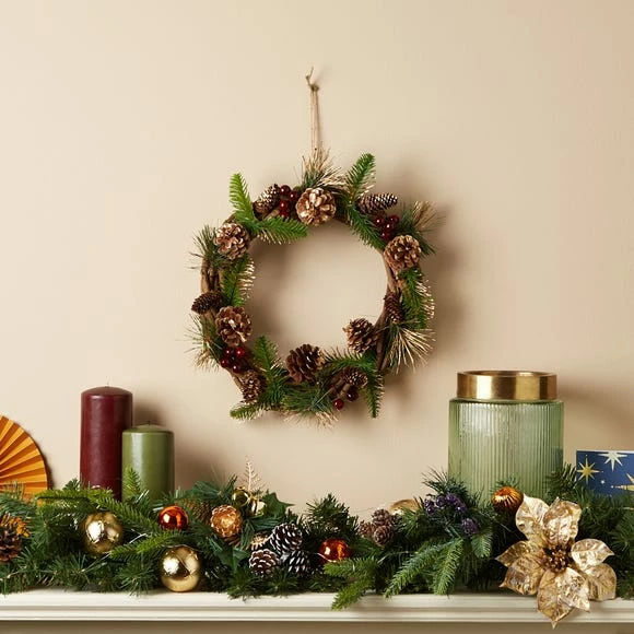 Hot Sale π Dunelm 32cm Berry and Cone Wreath π