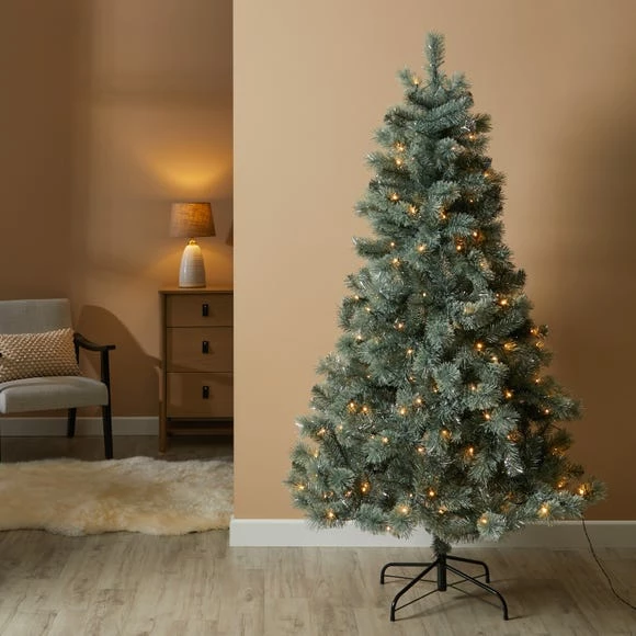 Outlet π₯° Dunelm 6ft Pre Lit 180 LED Blue Spruce π Christmas Tree with Silver Tinsel π