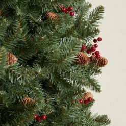 This beautiful artificial Christmas tree has a lifelike shape and appearance, perfect for creating the right atmosphere this upcoming festive season. This Christmas tree includes berries and pinecones and has realistic fir tips, simply finish off the look with your own tinsels and decoration. Have fun during the holidays with this lovely Christmas tree!