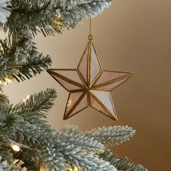 Add a touch of elegance to your Christmas tree with this exquisite star shaped hanging decoration. Designed with a rosewater colour Capiz shell and a painted gold metal work for a subtle shimmer. With an 8cm gold string attached, you can easily hang it to your tree with no fuss.