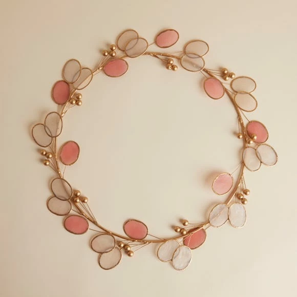Capiz shell with a natural finish for a daintier effect. With the metal work painted in gold, this wreath can be used both for Christmas and throughout the year. Capiz shell is a durable surface material, which is fully recyclable since as it is a rapidly- renewable resource and not considered endangered.
