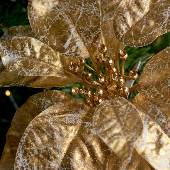 Ideal to clip onto Christmas trees, garlands or festive displays, this gold poinsettia clip has a beautiful eye catching design that sparkles and shimmers.