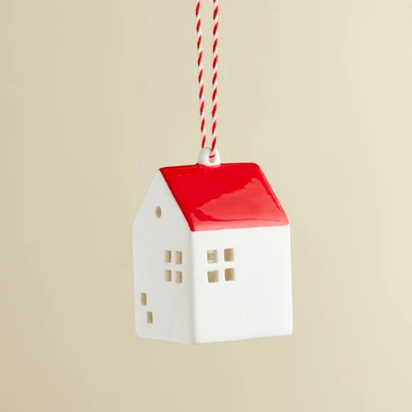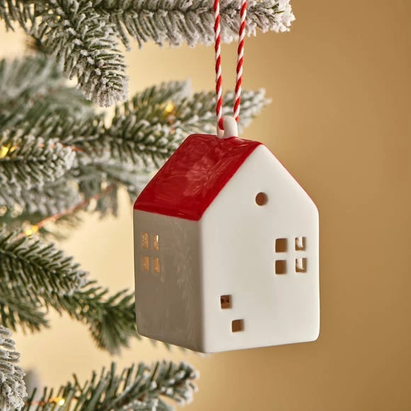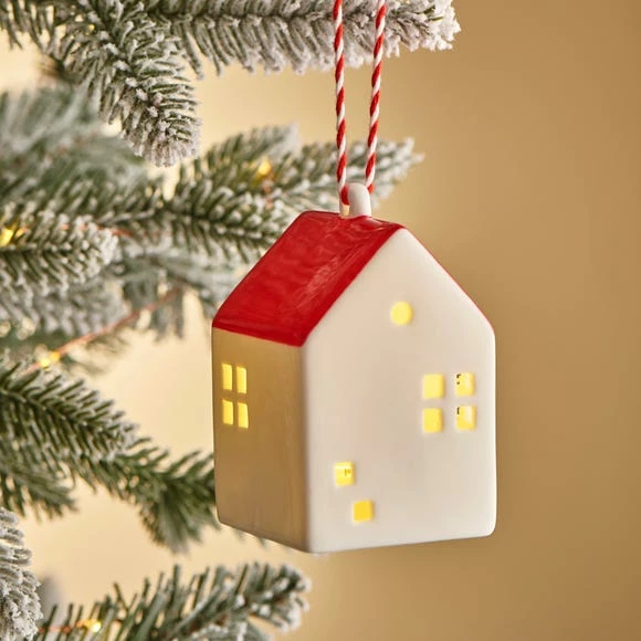 Buy π Dunelm LED Porcelain Red House Hanging Decoration β