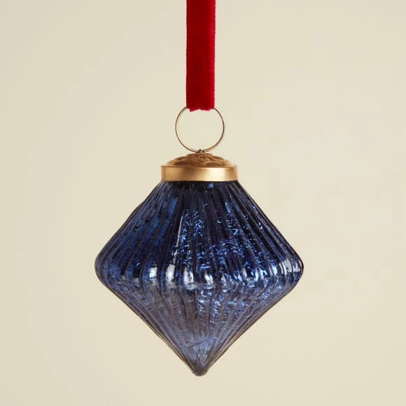 Cheapest 𧨠Dunelm Navy Diamond Glass Bauble β