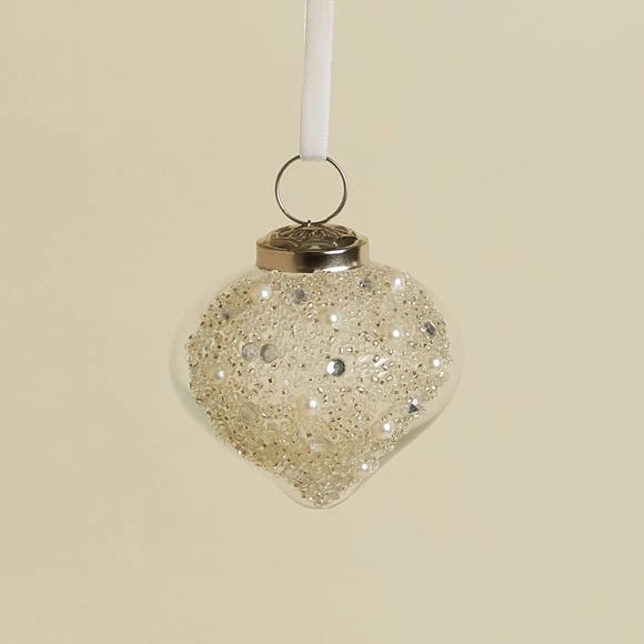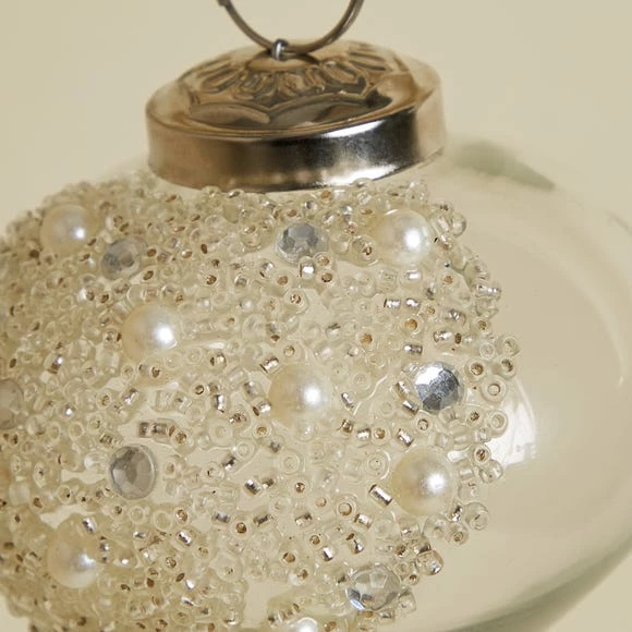 This pearl glass bauble is the perfect addition to any tree or mantel. The unique design is sure to make your tree stand out. The bauble is a great size and the peal beads design is perfect for any holiday décor to add a bit of sparkle to your holiday decor.