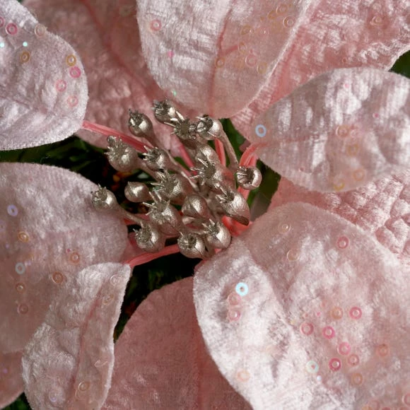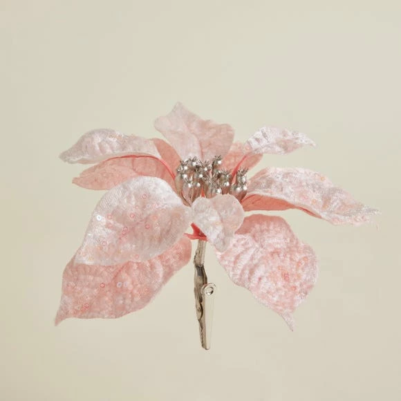 Ideal to clip onto Christmas trees, garlands or festive displays, this pink poinsettia clip has a beautiful eye catching design that sparkles and shimmers.