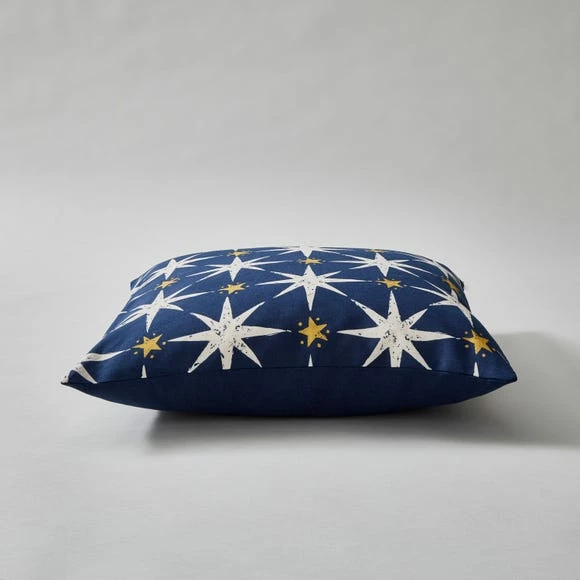 This printed star cushion is perfect for any living room, bedroom, or even a child’s room. The navy colourway with gold and white stars will bring a festive spirit to any room, and the soft cushion will be a cozy place to sit on cold winter nights. The cushion is made of high quality 100% cotton, and is machine washable for easy care. This is the perfect gift for anyone who needs a little extra Christmas cheer this year!