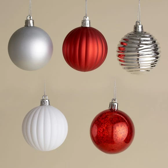 Best Sale π Dunelm Set of 25 Red and White Baubles π