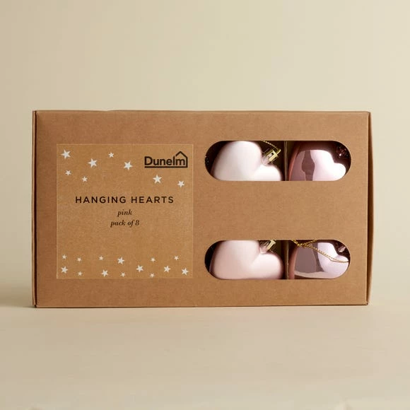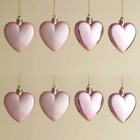 Brand new π Dunelm Set of 8 Pink Heart Baubles π₯°