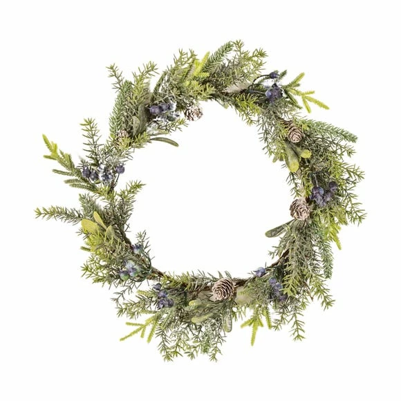 - Large faux sloe berry and pine wreath