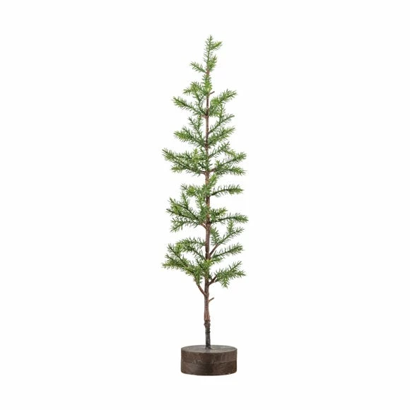 Complete your table decorations with this cute little faux pine sapling, presented on a rustic wooden log base. Perfect for adding. Perfect for small spaces or adding décor to your centrepiece display, this ornamental piece with unique foliage will complete the Christmas look and requires no maintenance so will stay fresh throughout the entire season.. Available in a smaller size for the perfect pairing.