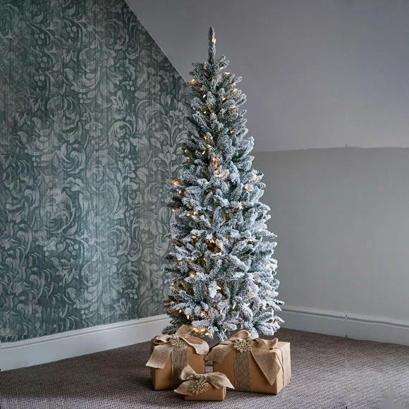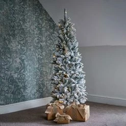 Designed with a pencil style ideal for small spaces or restrictive areas, this realistic and full looking tree is made up of 629 tips and hinged construction, perfect for easy assembly. Adding a touch of sparkle to you home as it is pre-lit with 200 warm white LED, this tree sits upon a sturdy tree stand, allowing it to stand as a statement piece within your home.