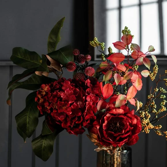 Bring glamour and fine details to your floral arrangements this Christmas with this set of pom pom spray in a vibrant crimson colour. Whether displayed alone or in a larger bouquet, this spray will add decoration to your home and requires no maintenance so will stay fresh throughout the entire season.