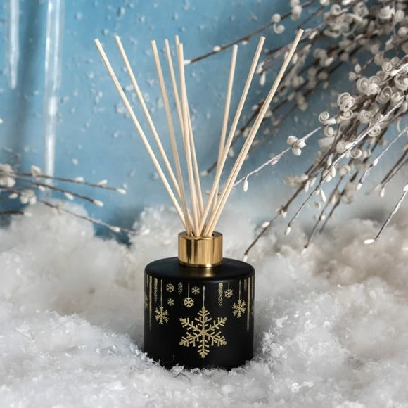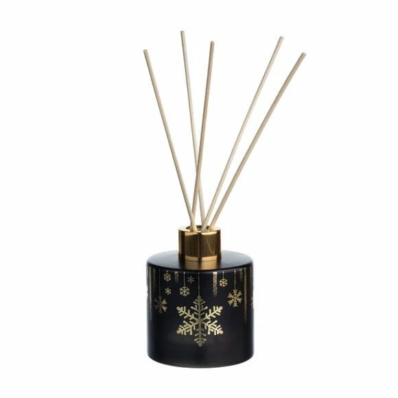 Shimmer and shine, it’s Christmas time! Celebrate the festive season with this reed diffuser, featuring a twist on the traditional gold, frankincense and myrrh. With a striking black coloured vessel, 5 reeds and decorated with a glowing gold snowflake design all over, this elegant looking home fragrance will add a stylish and sophisticated touch to your home, whilst creating a fresh and festive ambiance. Also available as a candle and larger multi wick candle for a complete gifting collection.