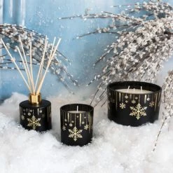 Shimmer and shine, it’s Christmas time! Celebrate the festive season with this glamorous candle, featuring a twist on the traditional gold, frankincense and myrrh. With a striking black coloured vessel and decorated with a glowing gold snowflake design all over, this elegant looking home fragrance will add a stylish and sophisticated touch to your home, whilst creating a fresh and festive ambiance. Also available as a reed diffuser and larger multi wick candle for a complete gifting collection.